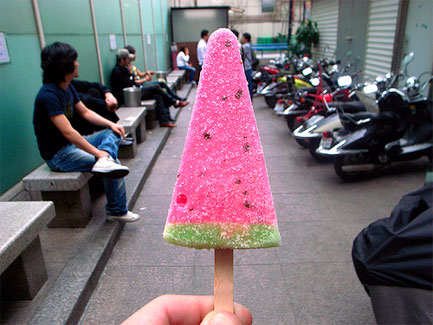Pubblicato: 2007/07/21 Archiviato in: Food design 2 commentiNew entry nella categoria Food design che si arricchisce di questo snack-gelato gusto anguria. Non cercatelo, è Made in Korea.