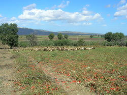 Il basso Molise è uno dei serbatoi di approvvigionamento dei pomodori di aziende locali di piccole o grandi dimensioni.. Il caldo sole ci sarebbe ma i metodi di coltivazione e raccolta sono “industriali”. E già questa non è una bella definizione per un prodotto di qualità. La coltivazione del pomodoro “da industria” comporta la massimizzazione delle rese per ettaro e poi .. c’è la raccolta meccanica.