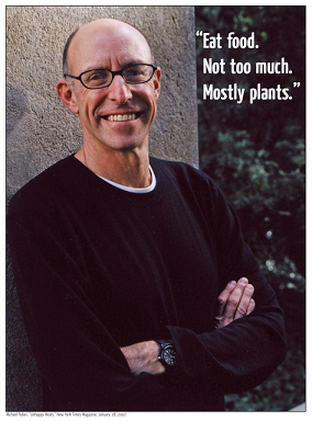 ‘Eat food. Not too much. Mostly plants’ Questo il messaggio in sette parole che Michael Pollan riserva ai lettori del suo ultimo libro ‘In Defence of Food’. Tali raccomandazioni alimentari erano state gia’ state introdotte nelle pagine conclusive del suo precendente ‘Omnivore’s Dilemma’ , un’indagine approfondita e sofferta, della catena alimentare americana e le sue implicazioni ambientali ed etiche. I volumi saranno tradotti presto in Italiano e Spagnolo