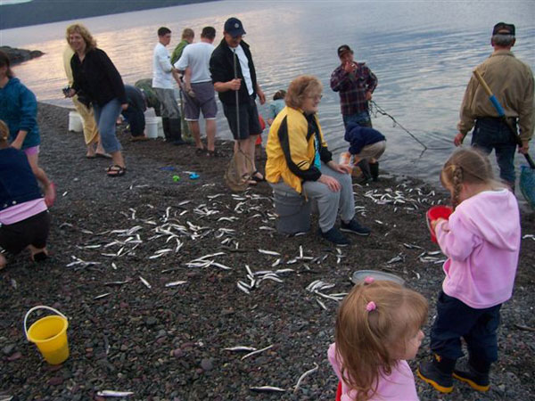 Benvenuti nella Capelin Spawning Beach, una delle spiagge canadesi di Newfoundland, laTrinity Bay, dove ogni estate arrivano i capelin per deporre le uova.