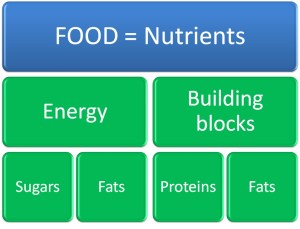 Il suo ragionamento è stato questo. Gli alimenti forniscono energia e fattori nutrizionali (proteine, grassi, carboidrati).