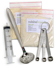 Pubblicato: 2009/10/30 Archiviato in: Additivi, Food design 32 commentiDedicato a tutti gli aspiranti gastronomi molecolari il kit con l’occorrente, l’indispensabile per iniziare. Dai che siete informatissimi e sapete bene che le materie prime incluse nel kit e di cui troverete bustine con 20g sono: alginato di sodio, calcio cloruro, agar-agar, carragenina, acido ascorbico, acido citrico, bicarbonato di sodio, lecitina di soia.