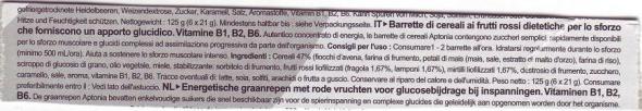 Ma torniamo in Italia. Partiamo con le barrette con i frutti rossi. Le etichette sono attinte dai siti web delle aziende o da acquisti della sottoscritta.