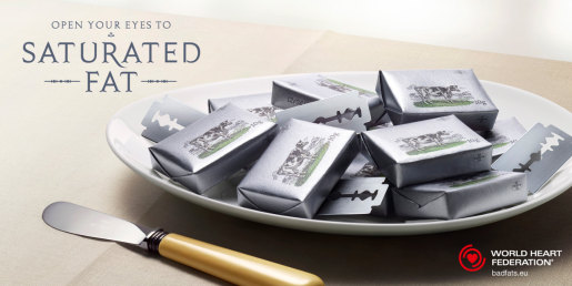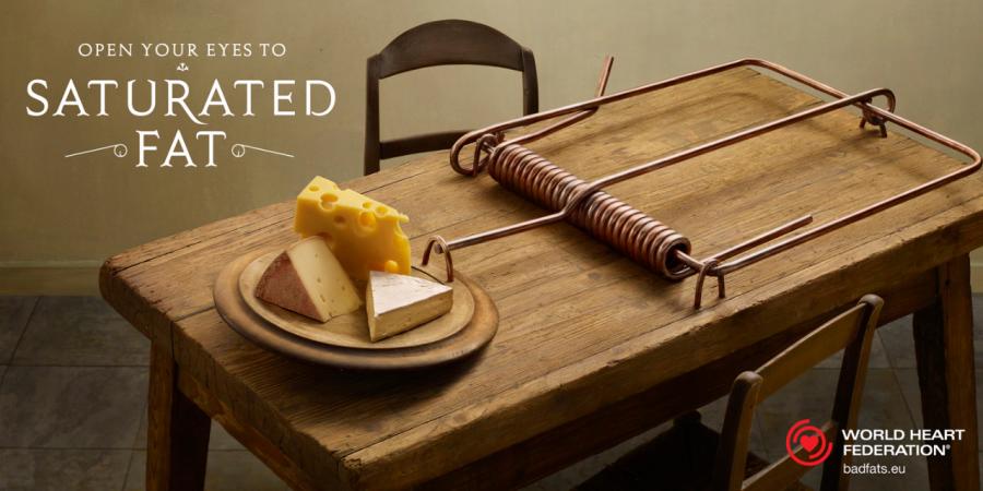 Guardate infatti come vengono demonizzati i formaggi in questa locandina della World Heart Federation