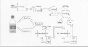 La copra viene polverizzata e sottoposta successivamente a pressione per estrarre l’olio. Il residuo (copra meal) viene spesso utilizzato come mangime per alimentare il bestiame. L’olio di cocco grezzo viene successivamente raffinato utilizzando processi comuni alle filiere produttive di altri oli vegetali. Un utile schema per chi non conoscesse i dettagli.