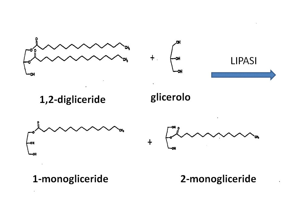 Si usano anche oli e grassi idrogenati? Può accadere, basta curiosare tra i siti web di alcune aziende e troviamo anche oli idrogenati come materie prime. I prodotti che si ottengono dalle reazioni chimiche descritte sopra, vengono ulteriormente purificati per ottenere una miscela di gliceridi, acidi grassi liberi e glicerina libera. La procedura della glicerolisi è più economica perché i grassi (trigliceridi) sono più economici rispetto agli acidi grassi isolati ed è richiesto meno glicerolo. Poiché le reazioni vengono condotte a temperature elevate (210°C-230°C), reazioni collaterali possono produrre cambiamenti di colore e formazione di composti non graditi. Un nuovo processo produttivo messo a punto prevede l’uso della esterificazione enzimatica. L’enzima che svolge la reazione è la lipasi ottenuta da alcuni microrganismi. Si usano temperature inferiori rispetto ai processi precedenti, si riduce la formazione di composti indesiderati quindi questo processo produttivo è considerato vantaggioso.