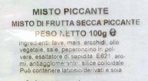 Pubblicato: 2012/02/15 Archiviato in: Additivi, L'angolo chimico, La borsa della spesa 9 commentiFave,mais, arachidi, olio vegetale, sale, peperoncino in polvere, esaltatore di sapidità, E621,aromi, antiagglomerante silice colloidale. Cosa ci fa la silice colloidale come ingrediente di questo mix proposto come idea aperitivo? Svolge il suo ruolo di additivo A-N-TI-AGG-LO-ME-RAN-TE come indicato. Il termine indica un “composto che riduce la tendenza di particelle individuali di un prodotto alimentare ad aderire una all’altra“.