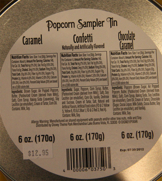 In rete si trovano diverse testimonianze di chi ha avuto l’opportunità di visitare gli spazi e non sono mancati i commenti sulla scarsa coerenza della multinazionale. Guerra alle cattivi abitudini alimentari? guardate cosa ha scovato uno dei frequentatori dell’attrazione nello spazio food del parco. Flavoured and coloured pop corn 😉