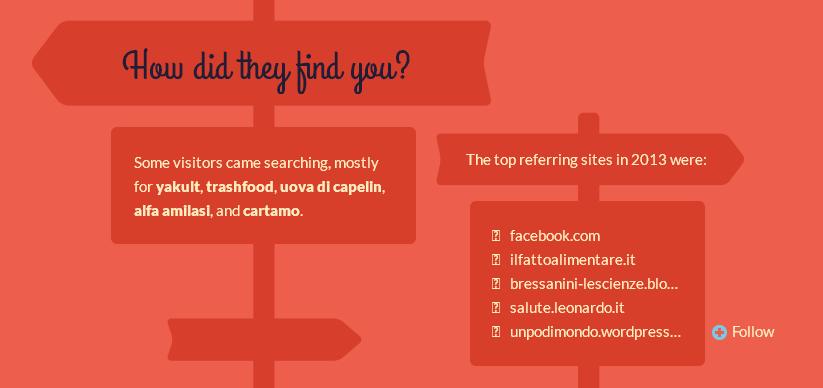 Pubblicato: 2016/01/02 Archiviato in: C' è posta per TRASHFOOD, TRASH FOOD STORY 1 CommentoPuntuale è arrivato il report annuale che mi ricorda la mia inattività in rete ma al tempo stesso mi informa che anche nel 2015 lettori sono arrivati e hanno cercato articoli scritti in passato.